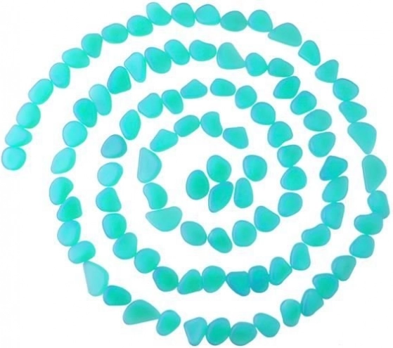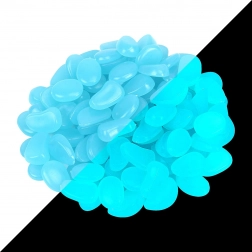 Dekorativní svítící kamínky v modré barvě přes den absorbují světlo a v noci jemně září, čímž vytvářejí působivý vizuální efekt bez elektřiny. Jsou vyrobeny z odolného, netoxického plastu s jemně leštěnými hranami, vhodné pro interiér i exteriér – od zahradních cestiček po akvária. V balení je 100 kusů pro kreativní aranžmá.