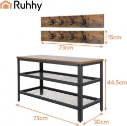 Horní hnědá MDF deska dodá interiéru teplý akcent a pohodlné místo k sezení při obouvání. Díky kompaktním rozměrům 73 × 44 × 30 cm skvěle zapadne i do menších prostor. Montáž zvládnete během cca 15 minut – v balení je kompletní montážní sada včetně šroubováku a imbusu.