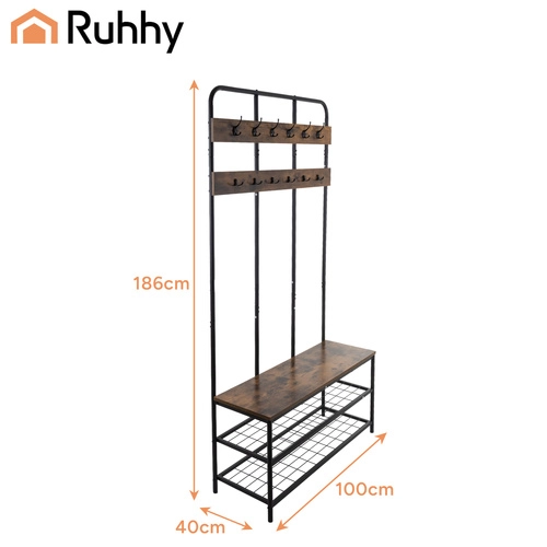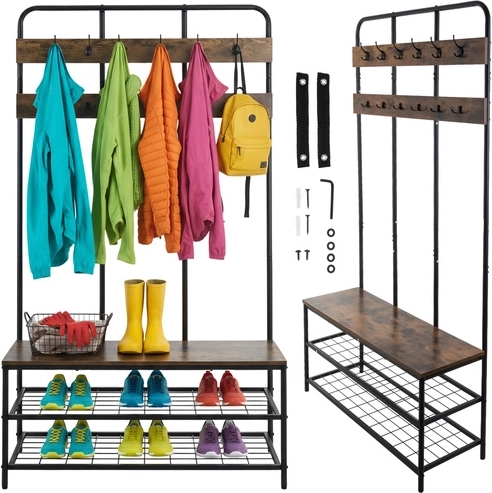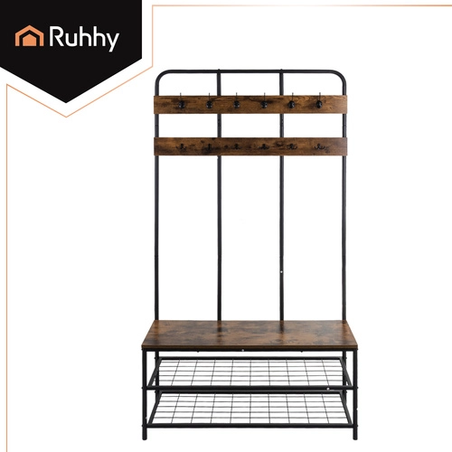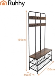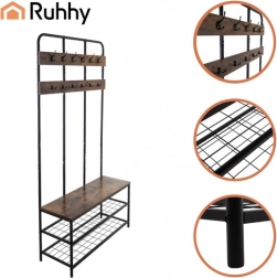 Elegantní a praktický předsíňový regál RUHHY kombinuje stabilní kovovou konstrukci, dvě prostorné police na boty, pohodlné sedátko a 12 dvojitých háčků pro maximální pořádek. Stylový loftový design s dřevěným dekorem zapadne do moderních i klasických interiérů a díky rychlé montáži máte vše připravené během pár minut.