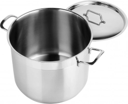 Robustní hrnec z kvalitní nerezové oceli 18/10 s matným povrchem a elegantním lemem lesku v horní části je navržen pro dlouhou životnost a každodenní používání. Díky silným bočním stěnám a vícevrstvému dnu výborně akumuluje i rovnoměrně rozvádí teplo, což zkracuje čas vaření a šetří energii.