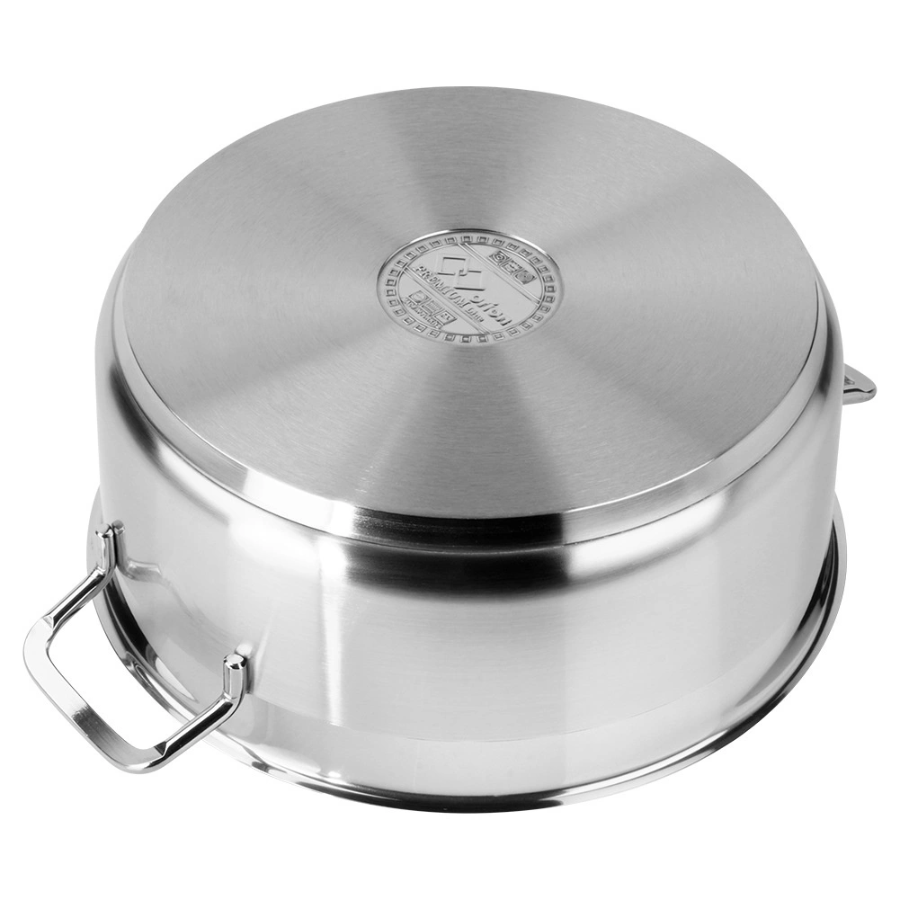 Praktická nerezová poklice udržuje teplo i vlhkost, pohodlné postranní úchyty zajišťují bezpečný úchop a dobře tvarované tělo hrnce usnadňuje čištění. Hrnec je vhodný pro všechny typy varných desek včetně indukce a lze jej mýt v myčce nádobí.