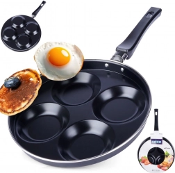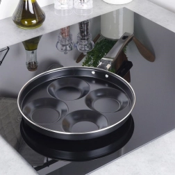 Tato 25cm pánev s 4 oddělenými jamkami (8 cm) usnadní přípravu snídaně i rychlé večeře. Každý kus bude stejně vysoký i propečený, ať už děláte vejce, lívance nebo malé palačinky. Odolná nepřilnavá vrstva minimalizuje připékání a zaručí snadné uvolnění i čištění.