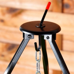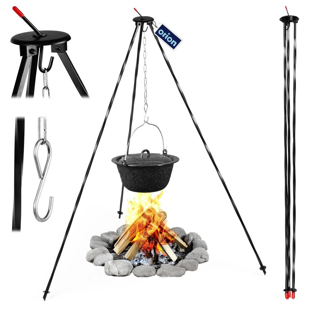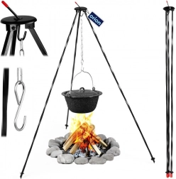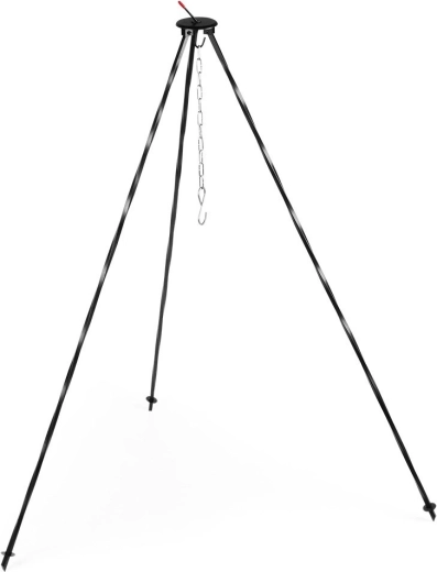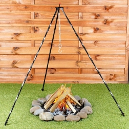 Robustní trojnožka je vyrobena z kvalitního kovu v černém provedení a je ideální pro zavěšení smaltovaných, ocelových i litinových kotlíků, stejně jako grilovacích roštů s řetízky a nejrůznějšího outdoorového nádobí. Díky ostrým zakončením nohou ji spolehlivě ukotvíte do země, takže nádobí visí bezpečně a stabilně.