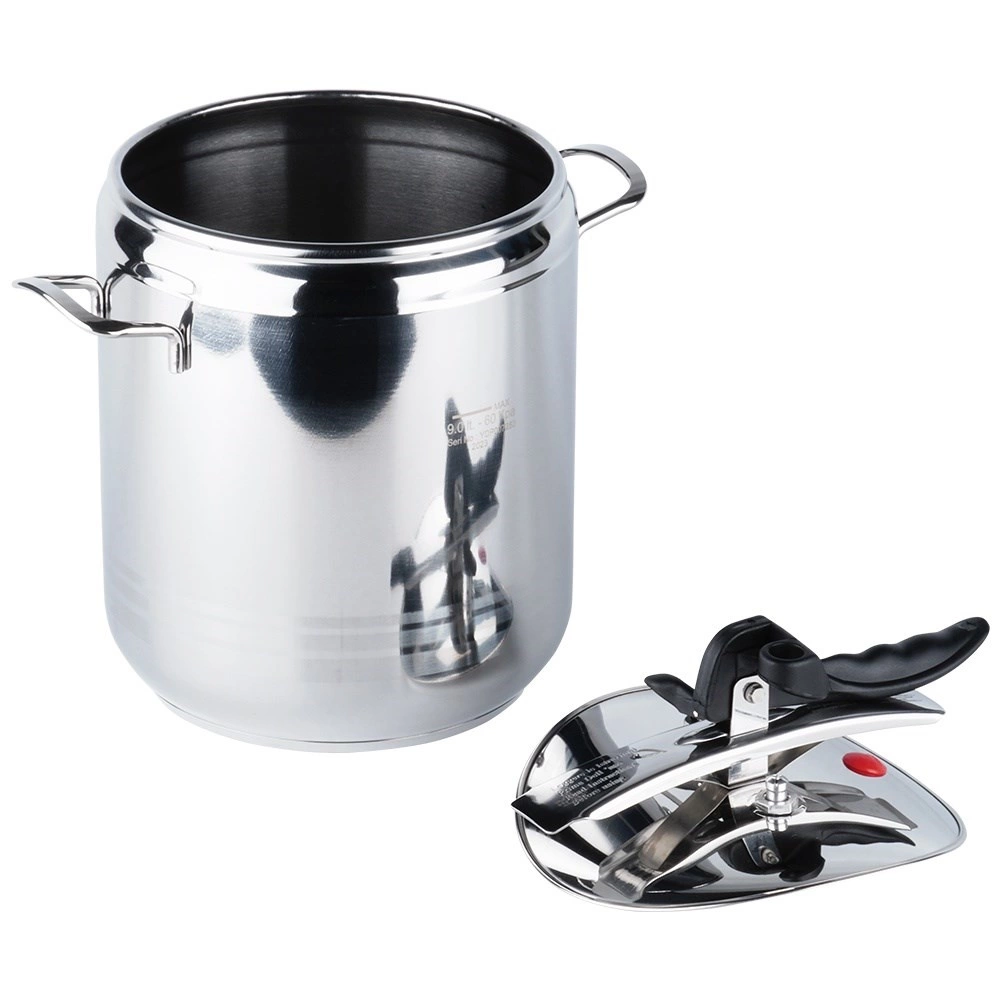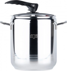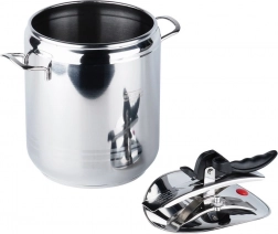 Masivní provedení z kvalitní nerezové oceli, 3vrstvé sendvičové dno pro rovnoměrnou distribuci tepla a možnost regulace tlaku přináší skvělé výsledky na plynových, elektrických, sklokeramických, halogenových i indukčních varných deskách. Hrnec se snadno ovládá a díky dvěma bezpečnostním ventilům a spolehlivému uzavíracímu mechanismu vaříte s klidem. Tělo je vhodné do myčky nádobí (víko doporučujeme mýt ručně).