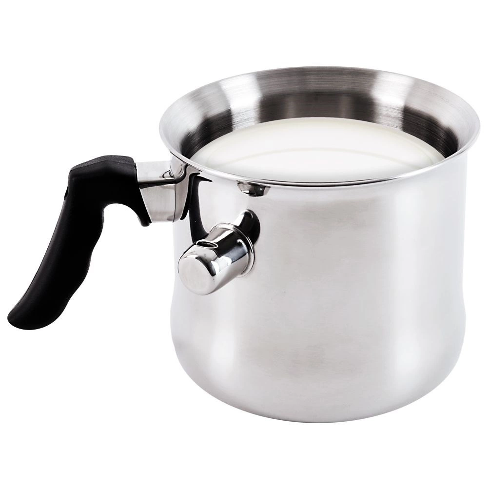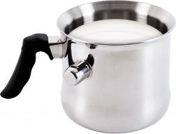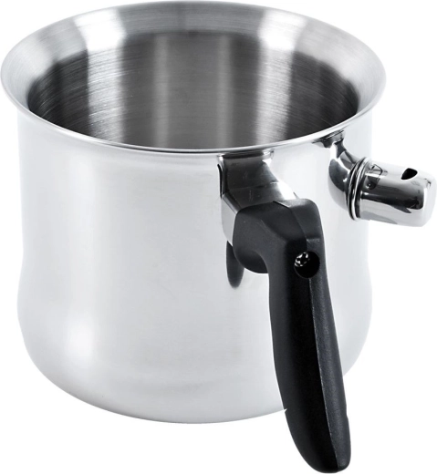 Tento kvalitní nerezový hrnec s dvojitou stěnou a vodním pláštěm je ideální pro šetrné ohřívání a vaření mléka, přípravu omáček, pudinků i rozpouštění čokolády. Při dosažení varu se ozve píšťalka, která vás upozorní, že je mléko hotové, a zabrání jeho překypění.