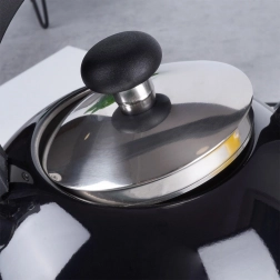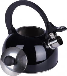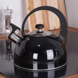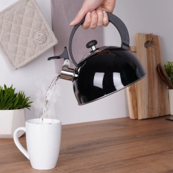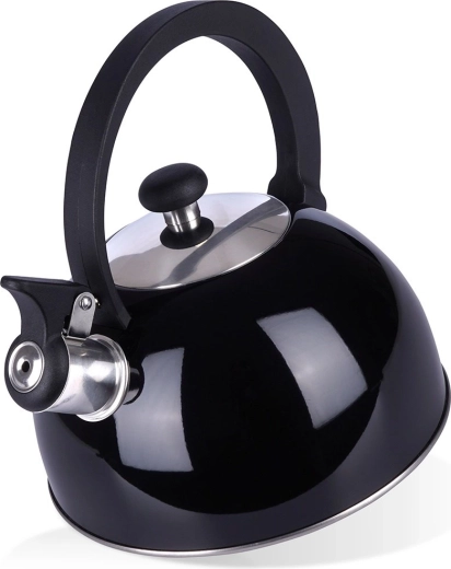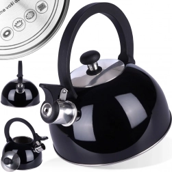 Stylová varná konvice s píšťalkou v leskle černém provedení spojuje odolnou nerezovou ocel a praktičnost pro každodenní použití. Široké dno zajišťuje efektivní ohřev a píšťalka vás spolehlivě upozorní na bod varu.