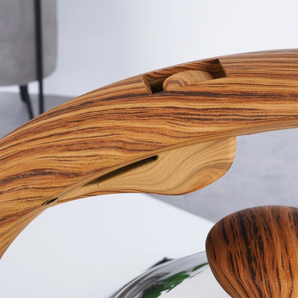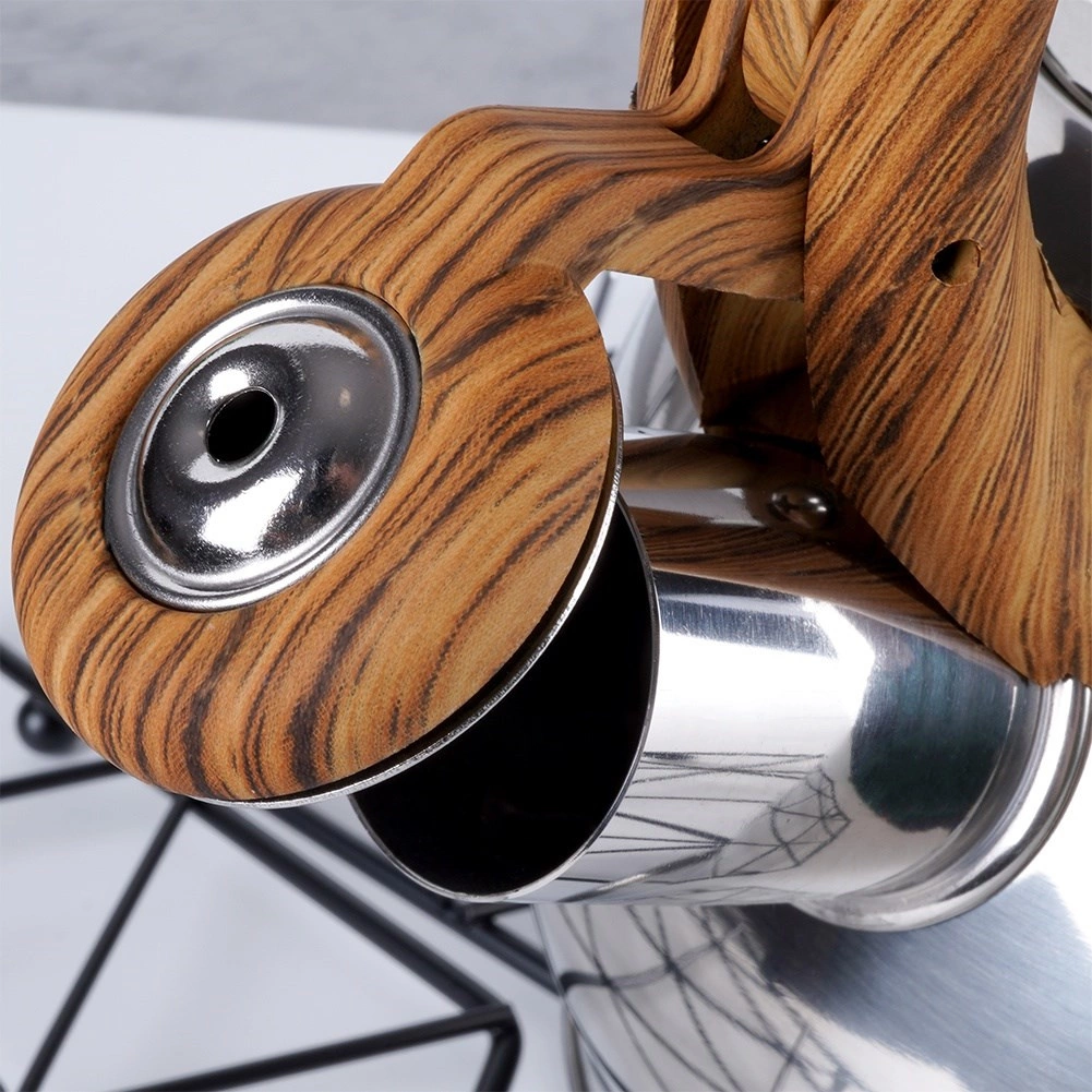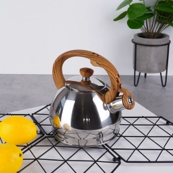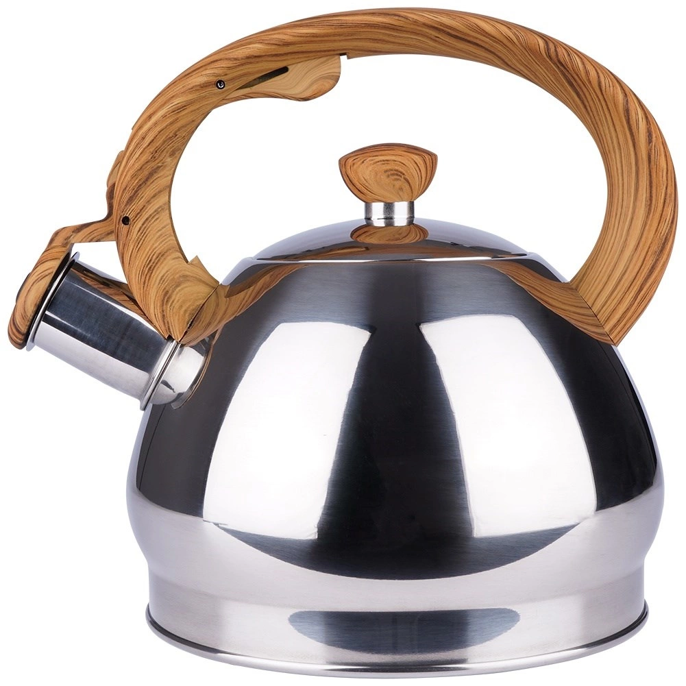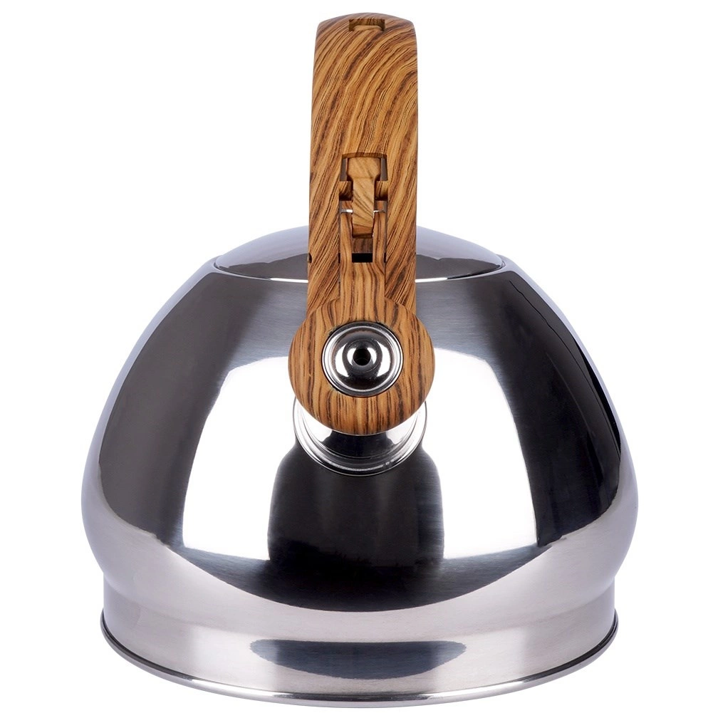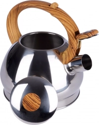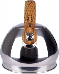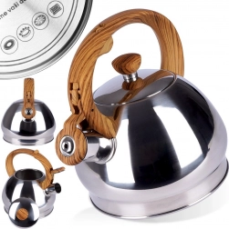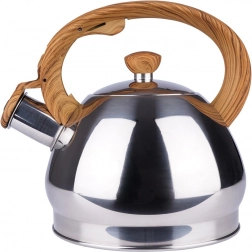 Stylová nerezová konvice s objemem 1,5 l a automatickým píšťalkovým víčkem pro bezpečné upozornění na var. Ergonomická tepelně odolná rukojeť s imitací dřeva zajistí pohodlné nalévání, široké dno pro rychlý ohřev a univerzální kompatibilitu včetně indukce. Ideální na čaj, kávu i bylinky.