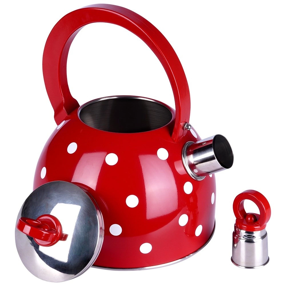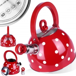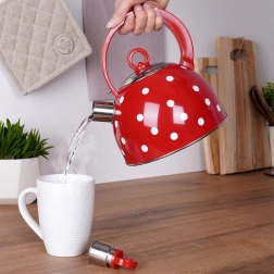 Červené provedení s bílými puntíky promění každodenní vaření vody v radost a dodá kuchyni originální šarm.