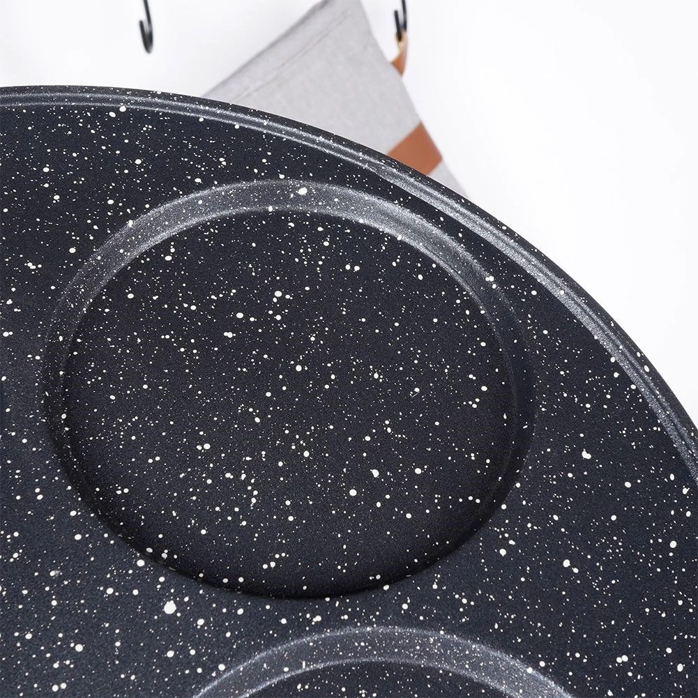 Čtyři kulaté důlky udrží těsto či vejce na místě a zajistí jednotný tvar i velikost každé porce.