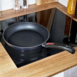 Objevte každodenního pomocníka do kuchyně: masivní pánev o průměru 28 cm s diamantovou nepřilnavou vrstvou na bázi keramiky. Povrch s částicemi diamantu skvěle vede teplo, neinteraguje s potravinami a umožňuje spolehlivé, rovnoměrné a úsporné vaření bez připalování.