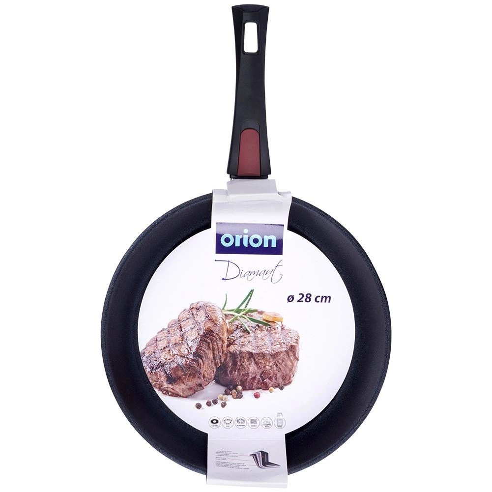 Robustní pánev z litého hliníku s diamantově zesílenou nepřilnavou povrchovou úpravou a odnímatelnou, neohřívající se rukojetí pro snadné vaření i pečení v troubě do 220 °C. Nabízí rychlý a rovnoměrný rozvod tepla, je vhodná pro všechny typy sporáků včetně indukce, umožňuje nízkotučné smažení a snadné čištění i v myčce. Originální produkt značky ORION.