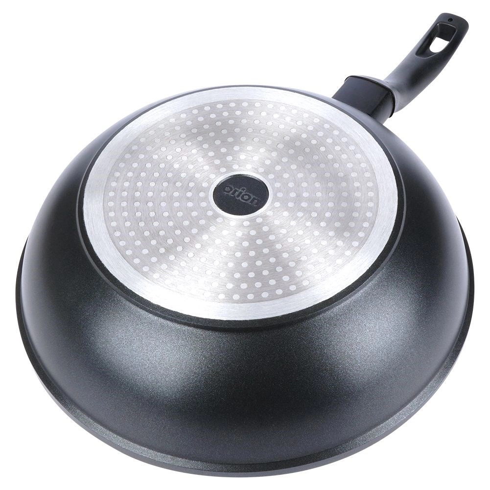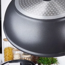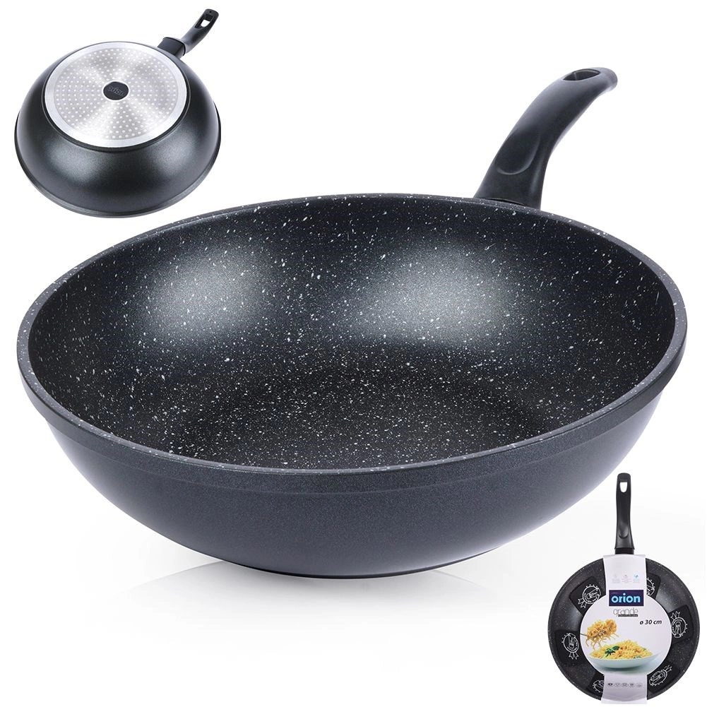 Univerzální granitový wok o průměru 30 cm z odolného hliníkového odlitku pro rychlé a rovnoměrné vaření. Díky nepřilnavé granitové povrchové úpravě bez PFOA a PTFE připravíte zdravé a chutné pokrmy s minimem tuku. Vhodný na plyn, elektřinu, sklokeramiku, halogen i indukci a lze jej mýt v myčce.