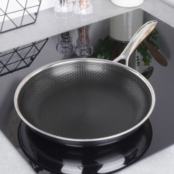 Speciální hexagonální textura zajišťuje skvělou nepřilnavost a dlouhou životnost. Na pánvi můžete bezpečně používat i kovové náčiní.