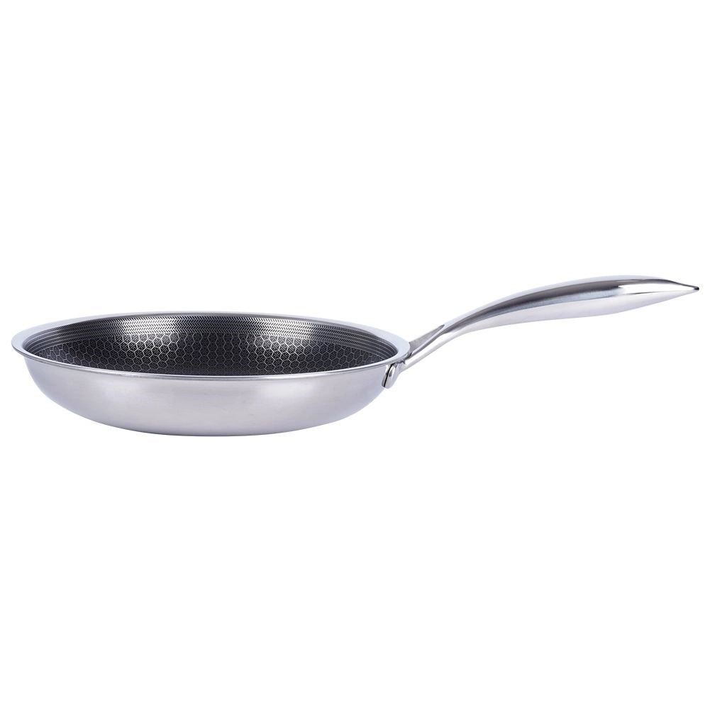Prémiová ocelová pánev COOKCELL o průměru 24 cm kombinuje nerezovou ocel a hybridní nepřilnavý povrch s hexagonální strukturou. Nabízí rychlé a rovnoměrné rozložení tepla, je odolná proti poškrábání, vhodná pro všechny typy sporáků včetně indukce a lze ji použít i v troubě do 260 °C. Díky snadnému čištění a možnosti mytí v myčce je ideální pro každodenní vaření.