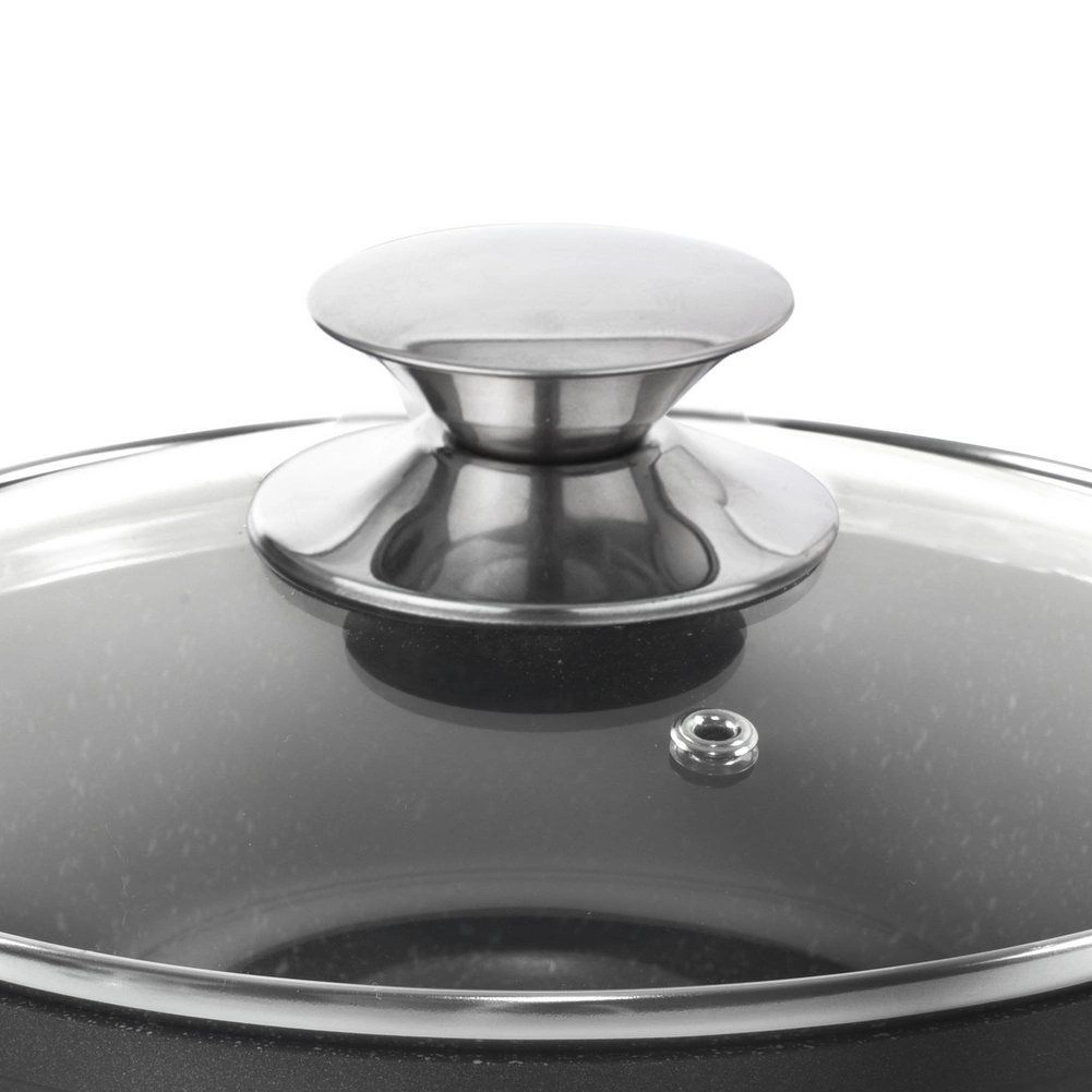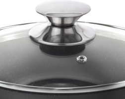 Transparentní poklice s kovovým knobem a ventilem umožňuje kontrolovat var a uvolňovat přebytečnou páru.