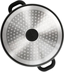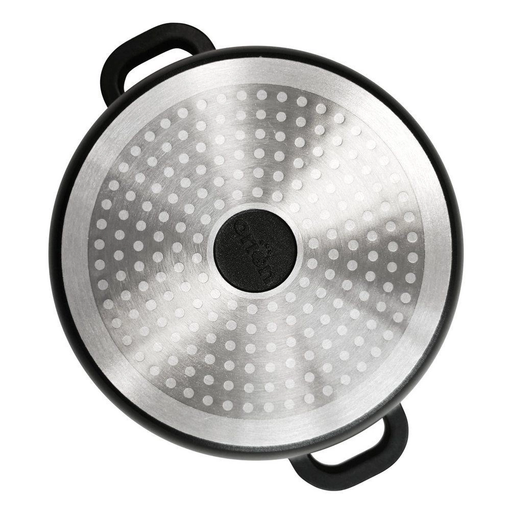 Indukční kompatibilní dno zajišťuje rychlé a rovnoměrné zahřátí na plynu, elektřině, sklokeramice, halogenu i indukci.