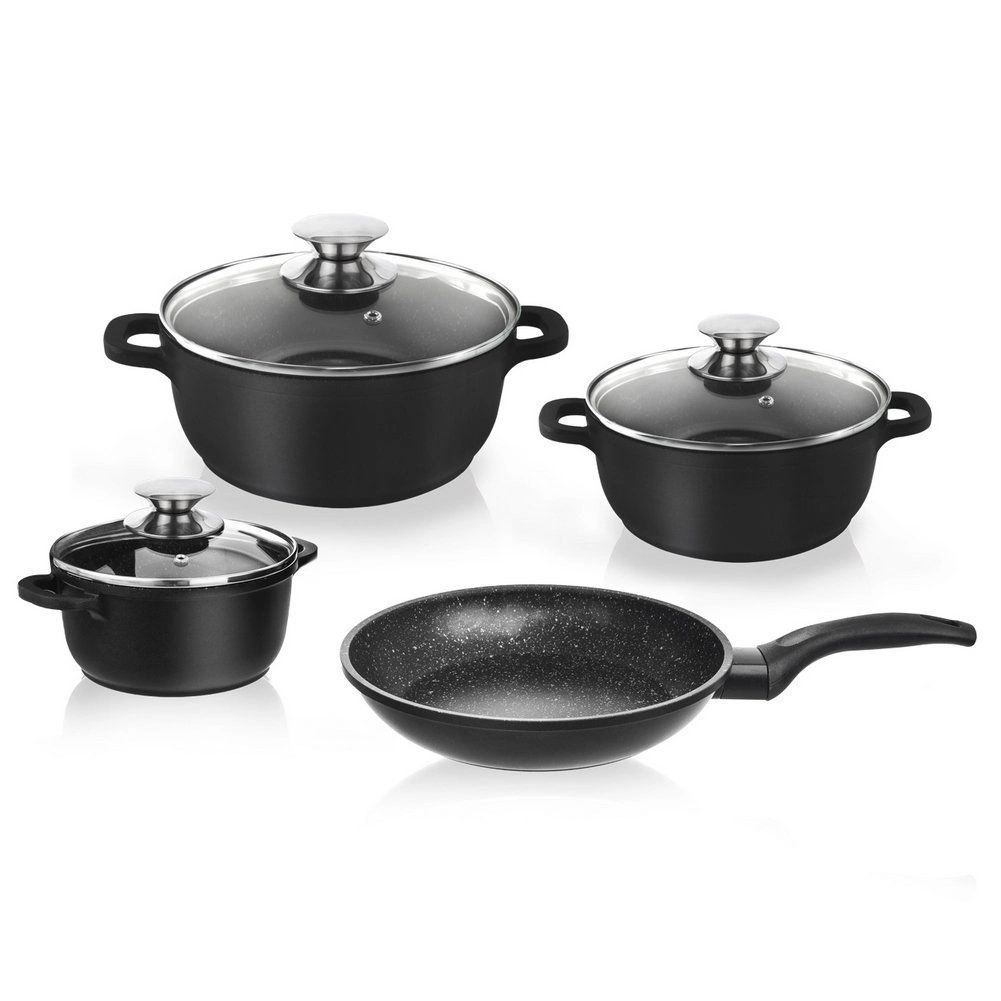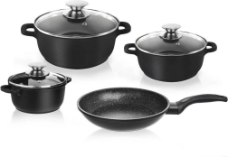Silné dno zajistí rychlé a rovnoměrné zahřátí, což šetří čas i energii. Nádoby jsou vhodné na plynové, elektrické, sklokeramické, halogenové i indukční varné desky a lze je použít i v troubě (poklice odolné do 200 °C). Údržba je snadná – povrch se snadno čistí a sada je vhodná do myčky nádobí.