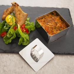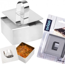 Praktická nerezová čtvercová forma s pěchovadlem pro přesné tvarování a elegantní servírování pokrmů. Vytváří jednotné porce, skvěle drží tvar a díky hladkému povrchu z nerezu se jídlo snadno vyjímá. Ideální pro tartary, rýži, dezerty, saláty i přílohy, navíc je vhodná do myčky.