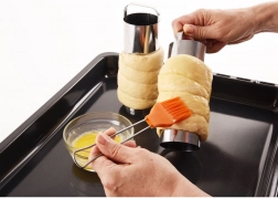 Profesionální sady dvou forem z kvalitní nerezové oceli jsou ideální pro výrobu maďarských kurtoshů i slovenských trdelníků. Hladký povrch zaručí rovnoměrné propečení a snadné sejmutí těsta po dopečení. Využijete je i na další pečivo, například skvělé skořicové rolky.