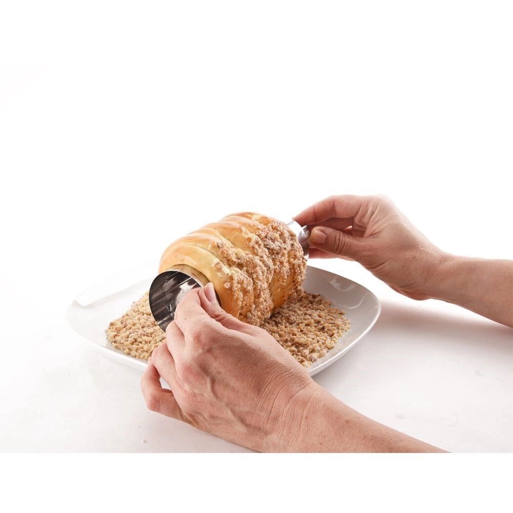 Cylindrický tvar a nerezová ocel zajišťují rovnoměrné propečení a snadné sejmutí hotového pečiva.