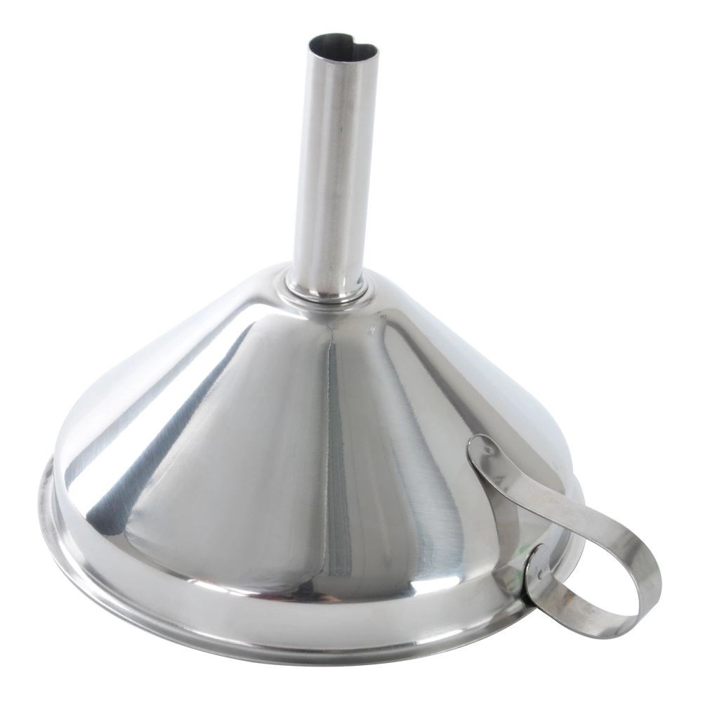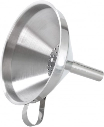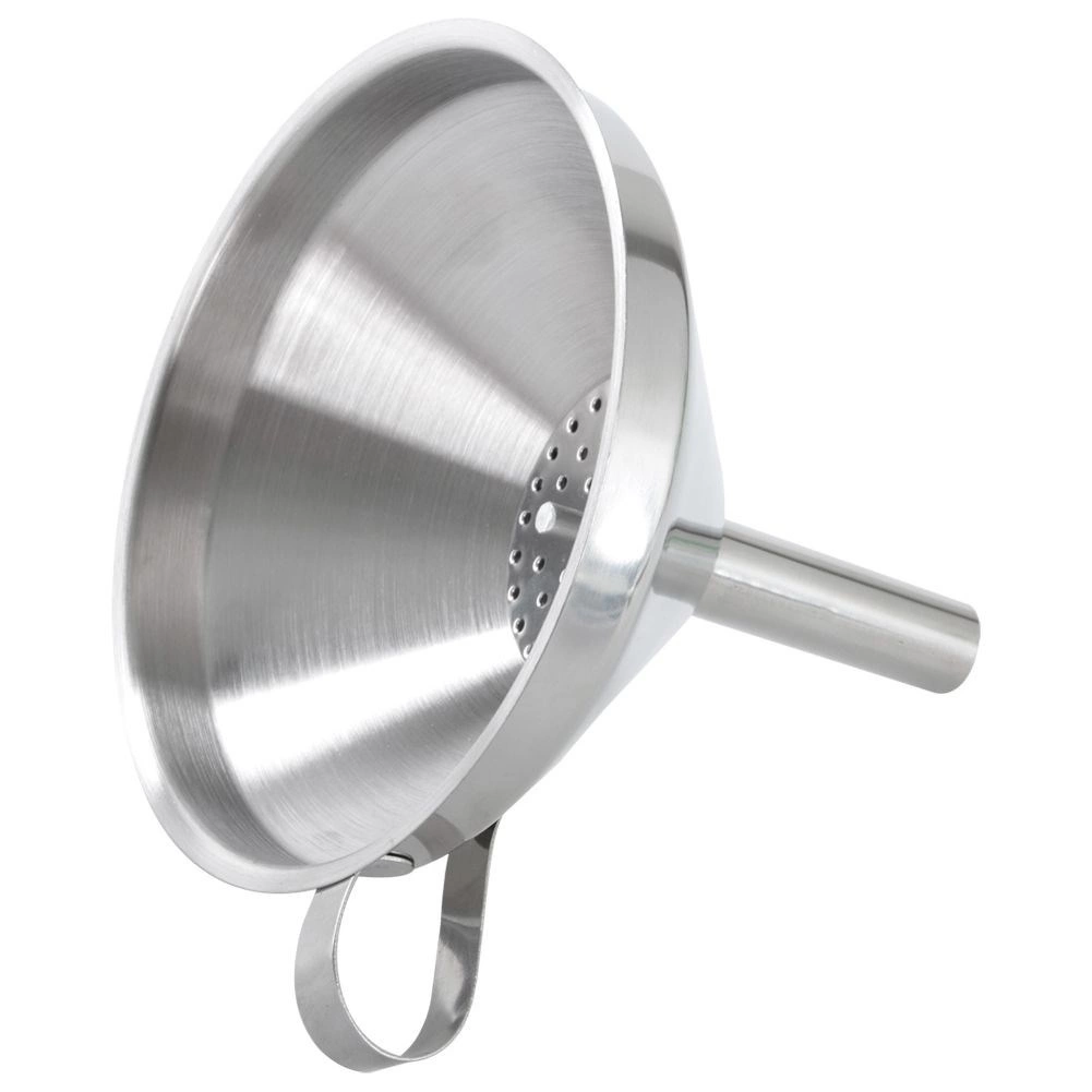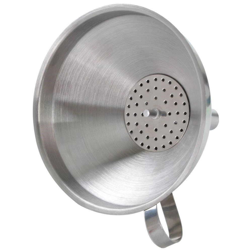 Usnadněte si plnění lahví a sklenic s odolným kuchyňským trychtýřem z nerezové oceli. Vyjímatelné sítko spolehlivě zachytí kousky ovoce či drobné sedimenty, takže přelévání je čisté a přesné. Ergonomické ucho zajistí stabilní držení a možnost zavěšení na kuchyňský reling.