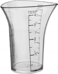 Tato praktická odměrka ve tvaru kalíšku o objemu 60 ml z transparentního plastu je ideální pro každodenní vaření, pečení i míchání nápojů. Díky kombinované stupnici pro ml, lžičky a lžíce snadno odměříte i malé objemy s maximální přesností.