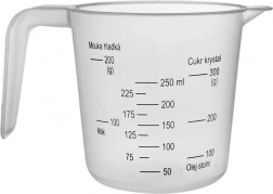 - Kuchyňská odměrka (hrnek s uchem a výlevkou)