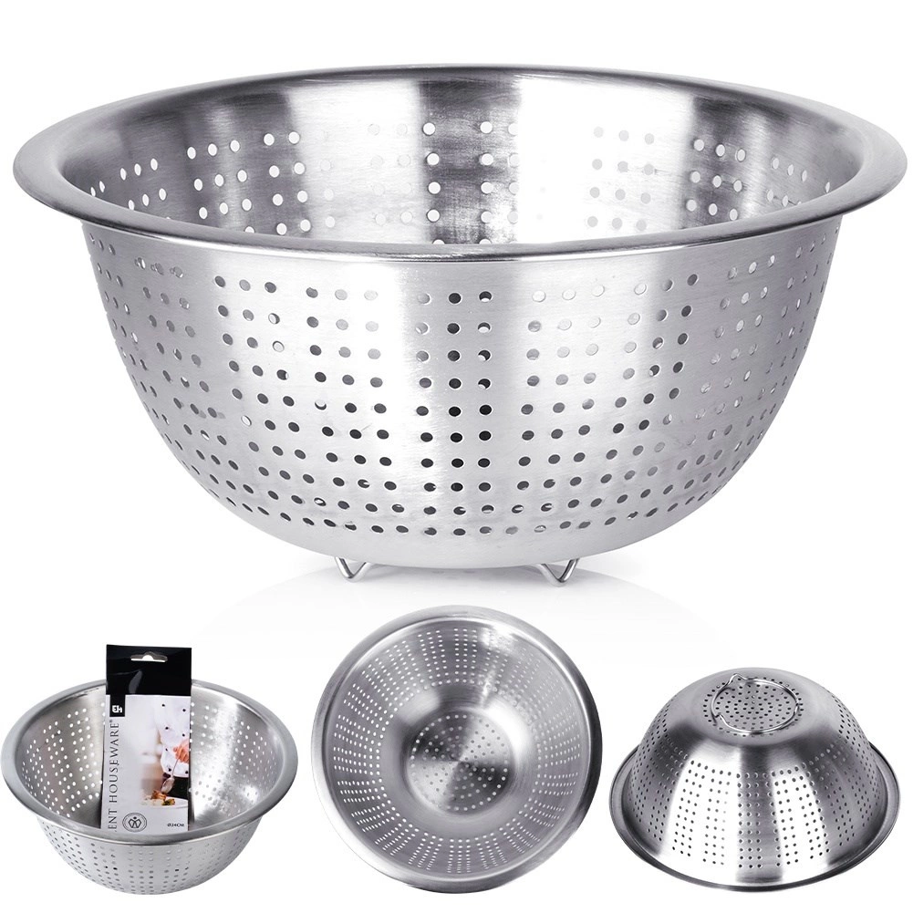 Praktický cedník v klasickém kulatém tvaru se hodí do každé domácnosti. Díky odolné nerezové oceli je hygienický, zdravotně nezávadný a chuťově neutrální. Rovnoměrně rozmístěné perforace urychlují odtok vody, zatímco zpevněný okraj a nožky zajišťují stabilitu na pracovní desce či dřezu.