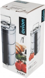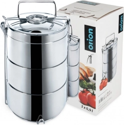 Tento termo jídlonosič kombinuje odolnost nerezové oceli s funkčním uspořádáním do tří samostatných nádob, které lze pevně sepnout do stabilního celku. Každá nádoba má objem 900 ml, takže pohodlně oddělíte polévku, hlavní chod i přílohu. Díky dvojité stěně s vakuovou izolací udržíte pokrmy déle v požadované teplotě.