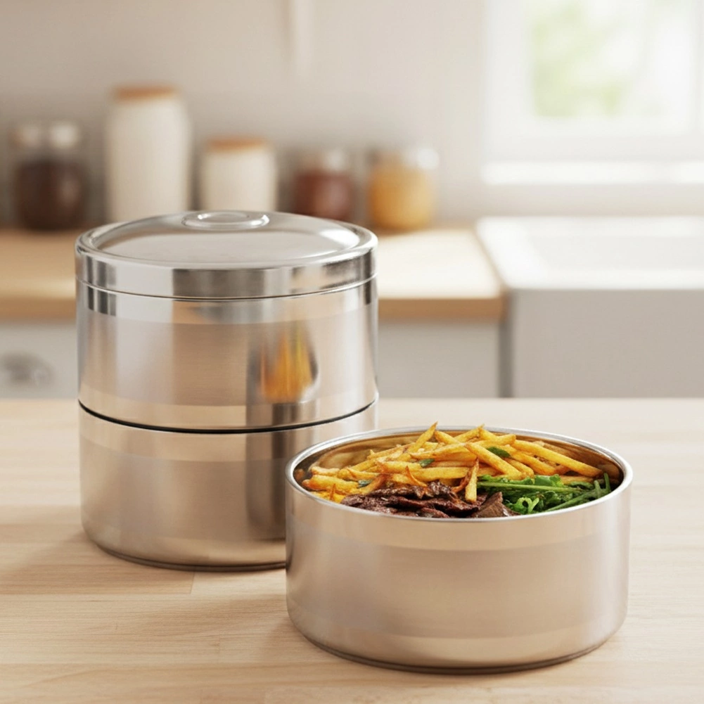 Užívejte si teplé nebo studené pokrmy kdekoli na cestách díky menážce s třemi nerezovými nádobami, které se bezpečně spojují do jednoho celku pomocí bočního rámu. Každá nádoba má objem 1,1 l, takže snadno oddělíte polévku, hlavní chod i dezert.