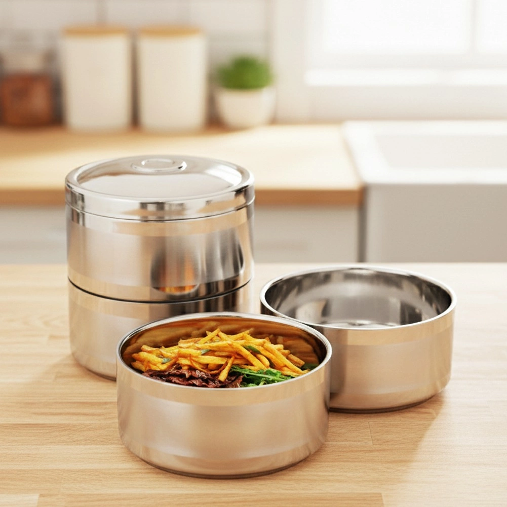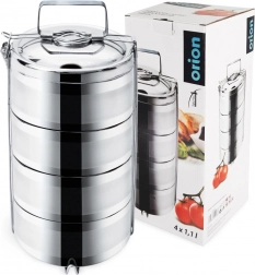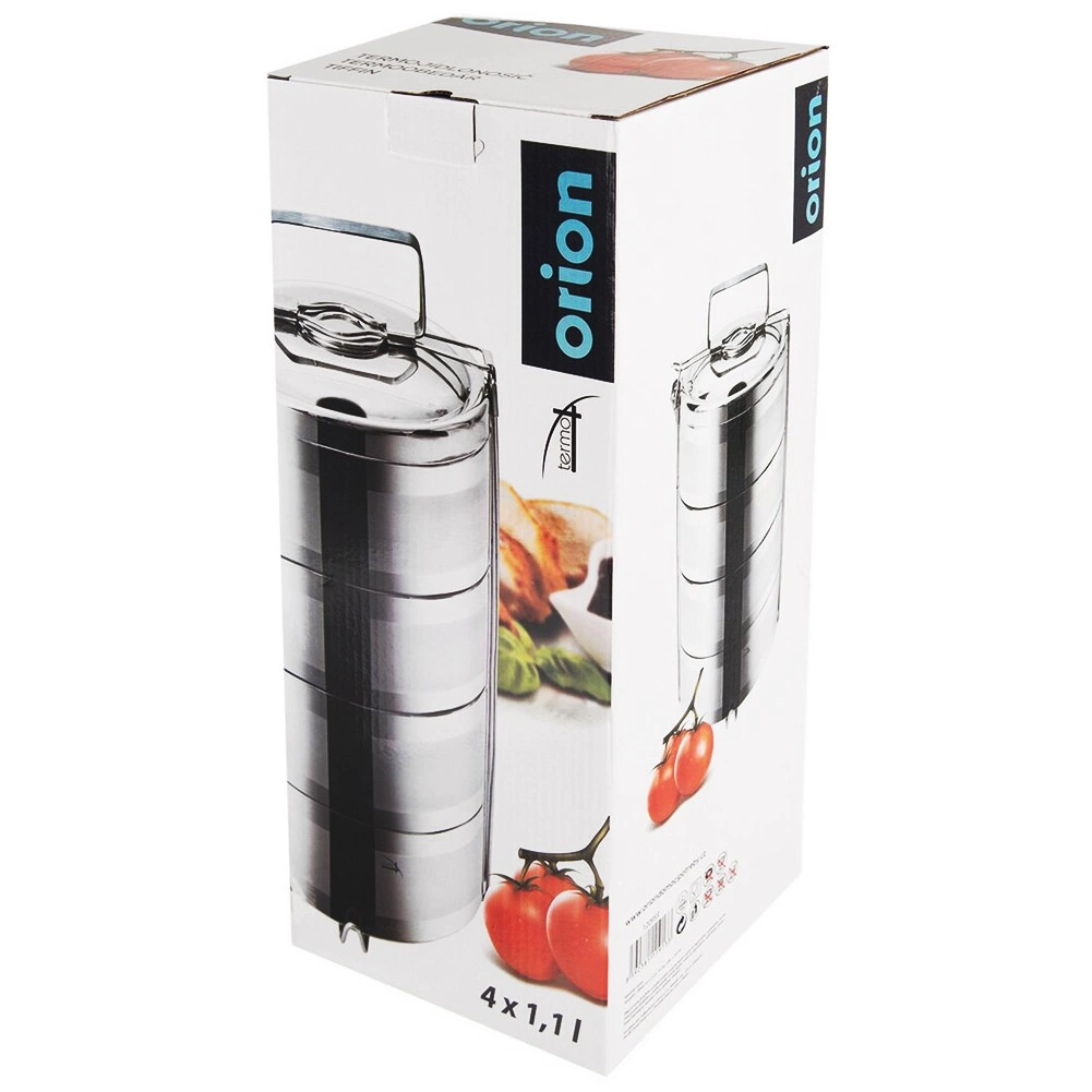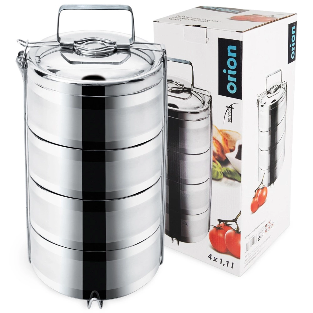 Praktický nerezový jídlonosič s 4 oddělenými patry a kapacitou 4×1,1 l udrží vaše pokrmy déle teplé či studené díky dvojité stěně s vakuovou izolací. Robustní nerezová ocel, bezpečné boční spony a pohodlné madlo zajistí snadné přenášení obědů do práce, na výlety i pikniky.