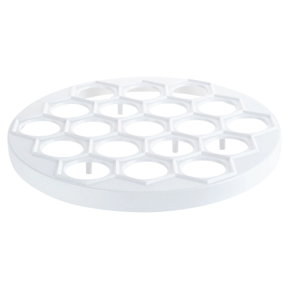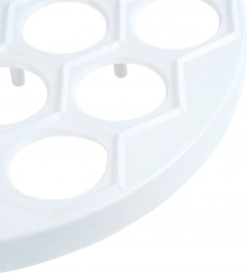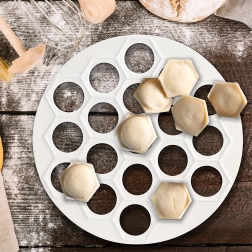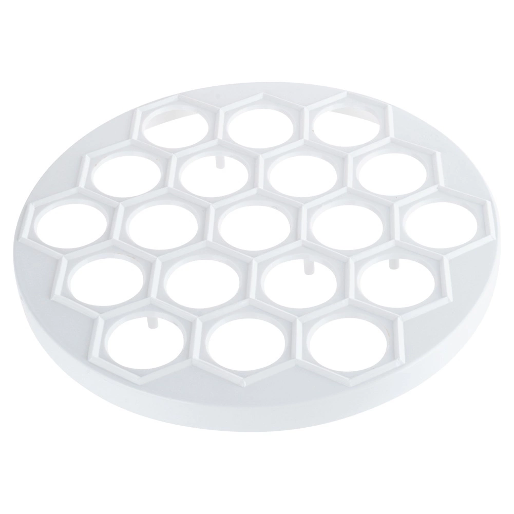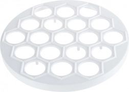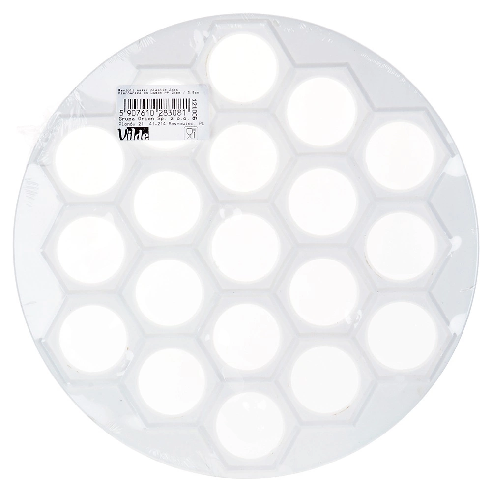 Praktická forma na pelmeně, ravioli a mini pirohy o průměru 24 cm pro rychlou přípravu až 37 kousků najednou. Z lehké a odolné potravinářské plastové hmoty v bílé barvě, ideální pro rychlé a rovnoměrné tvarování náplní i těsta. Skvělá do každé kuchyně i gastra, šetří čas a zaručuje dokonalý tvar každého kousku.