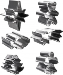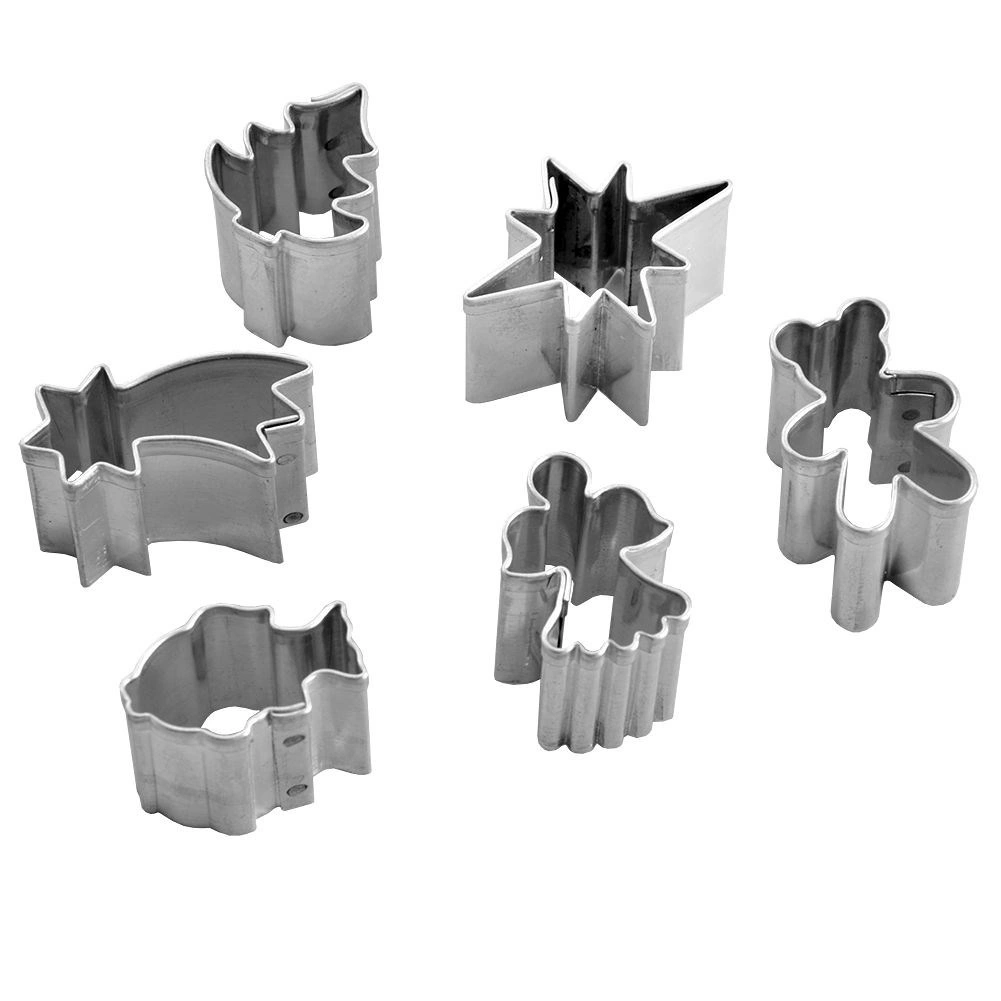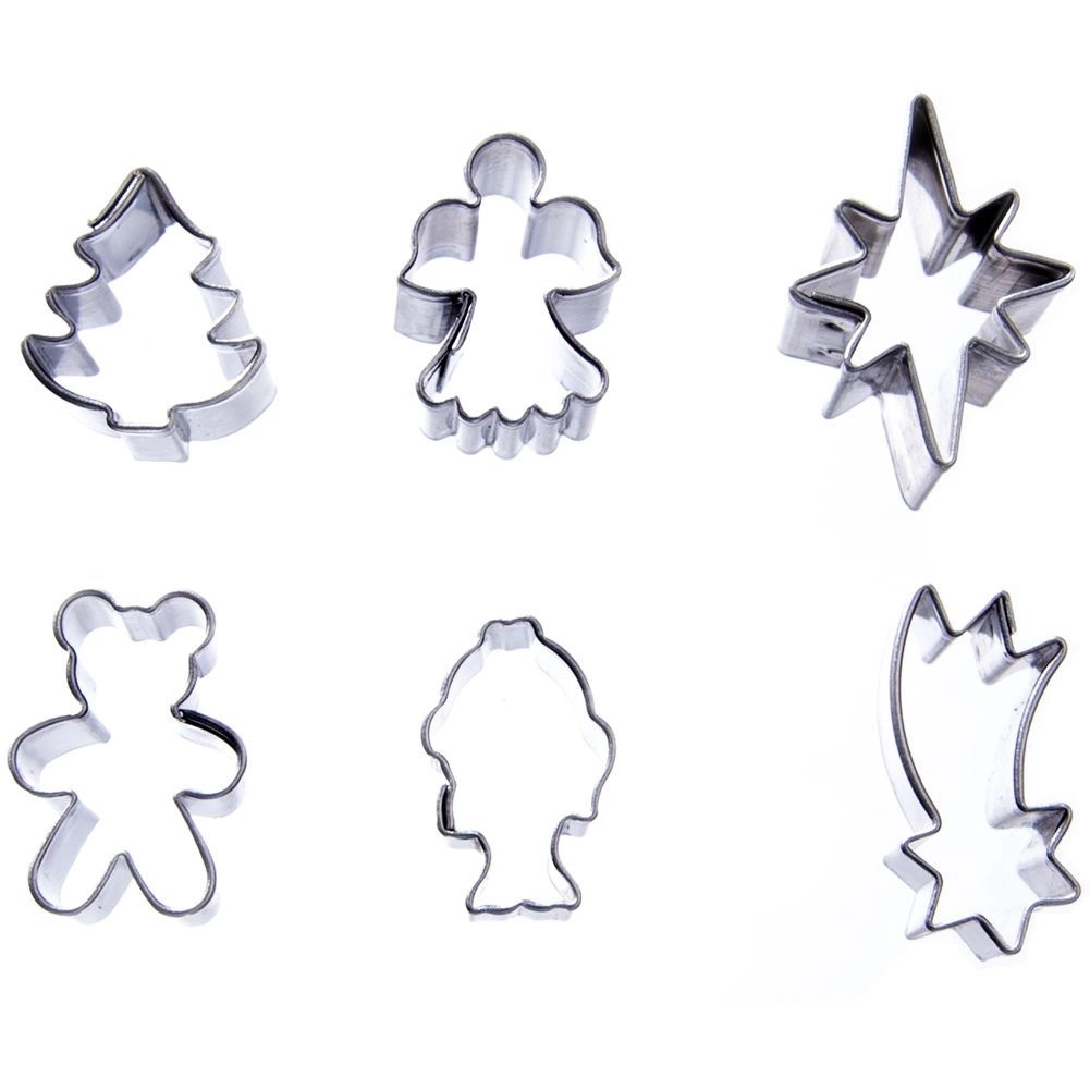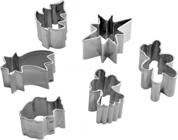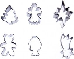 Praktická sada šesti malých vánočních vykrajovátek z kvalitní nerezové oceli pro přesné zdobení cukroví i dortů. Obsahuje tvary anděla, stromku, komety, hvězdy, kapra a medvídka. Ideální na vykrajování středů sušenek, zdobení perníčků i tvorbu ozdob z fondánu či marcipánu. Odolná nerez, bezpečné hrany, snadné čištění a možnost mytí v myčce.