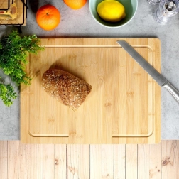 Rozměr 45 × 35 cm poskytuje dost místa pro krájení i válení těsta. Bambus je ekologický, pevný, nedeformuje se a nepohlcuje pachy.
