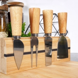 Široký sekáček, úzký nůž, vidlička a nůž na mazání pokryjí krájení, porcování i servírování měkkých i tvrdých sýrů.