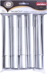 Sada cukrářských trubiček pro pečení domácích trubiček a kornoutků z listového či jiného těsta. Každá forma má délku 10 cm a průměr 1,5–2,3 cm. Vyrobeno z kvalitního chromovaného kovu, vhodné pro styk s potravinami. Snadné použití, odolné materiály a víceúčelové využití pro sladké dezerty i slané jednohubky.