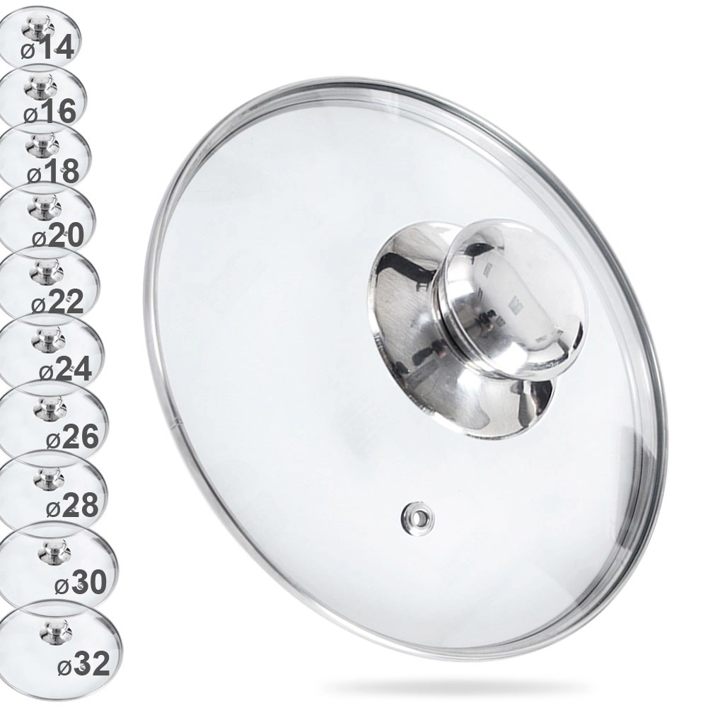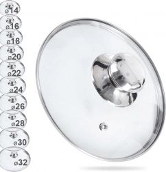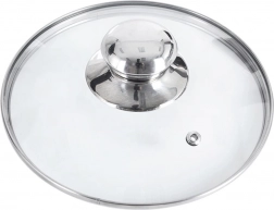 Univerzální skleněná poklice o průměru 14 cm se žáruvzdorným sklem, nerezovým okrajem a úchytem a praktickým odvětrávacím otvorem. Díky průhlednému sklu můžete sledovat vaření bez nadzvedávání, poklice pevně přiléhá a pomáhá zkrátit dobu vaření i omezit prskání.