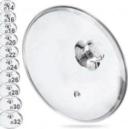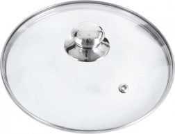 Univerzální skleněná poklice o průměru 28 cm se silným nerezovým lemem, pohodlným kovovým úchytem a parním ventilem. Žáruvzdorné sklo umožní sledovat vaření bez nadzvedávání, mírně vypouklý tvar podporuje cirkulaci horkého vzduchu a těsný dosed snižuje únik páry a stříkání. Vhodná pro hrnce, pánve i rendlíky.