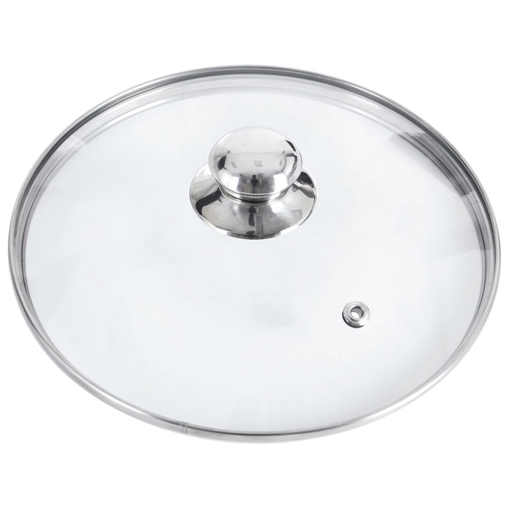 Skleněná poklice o průměru 30 cm je ideálním doplňkem do každé kuchyně. Průhledné žáruvzdorné sklo umožňuje kontrolu vaření bez zbytečné ztráty tepla a páry, zatímco parní ventil odvádí přebytečnou vlhkost. Nerezový okraj a knoflík zajišťují odolnost a dlouhou životnost.