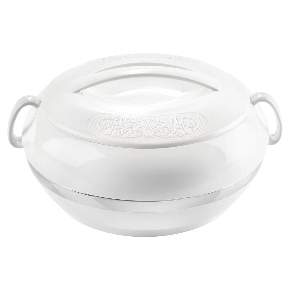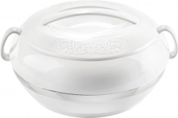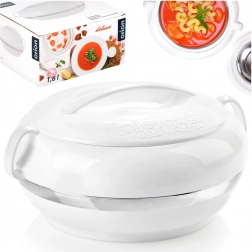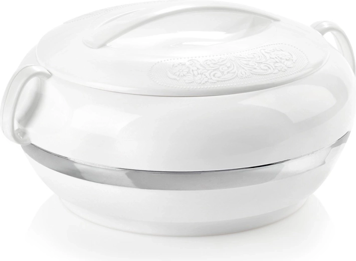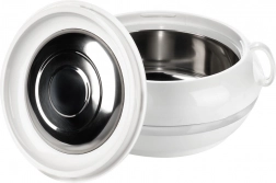 Uchovejte teplotu jídla bez složitého ohřívání. Tato izolovaná servírovací mísa se skvěle hodí na rodinné obědy, grilování i zahradní párty. Vnitřní nerezová část pomáhá udržet teplo až 2 hodiny, v létě zase ochrání zmrzlinu či studené dezerty před rychlým táním. Elegantní víko s dekorem a čistý bílý design se hodí do každé kuchyně.