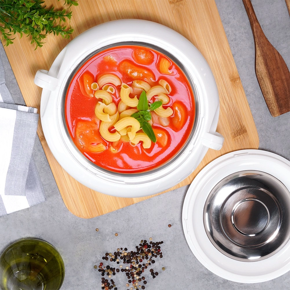 Dvojitá konstrukce s nerezovou vložkou udrží jídlo déle teplé či studené – ideální pro servírování polévek i dezertů.