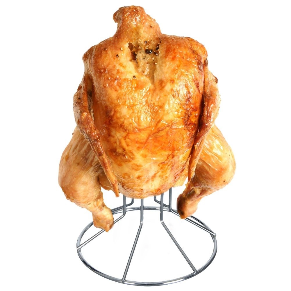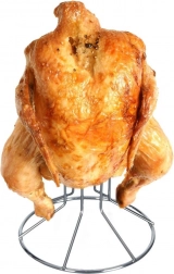 Stojan je vyroben z kvalitního chromovaného kovového drátu, má stabilní základnu a snadno se používá i skladuje. Je univerzální – hodí se nejen na kuře, ale také na kachnu, krůtu nebo husu, což z něj dělá praktický doplněk do každé domácnosti.
