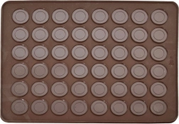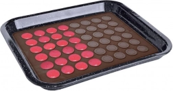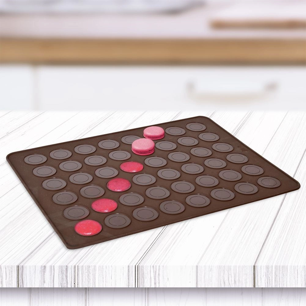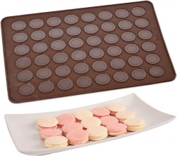 Praktická silikonová podložka na pečení až 48 kusů makaronek se dvěma velikostmi kroužků (⌀ 2,5 cm a 3,5 cm). Vyrobena z kvalitního silikonu s nepřilnavým povrchem, odolná od -40 °C do +220 °C, vhodná do trouby, mikrovlnky i mrazáku a myčky. Flexibilní provedení pro snadné skladování bez přejímání pachů.