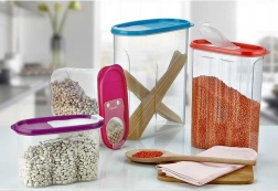 Tato odolná a praktická nádoba je ideální pro organizaci spíže i kuchyňské linky. Dávkovací víko zaručí rychlé a čisté sypání bez rozsypání, zatímco průhledné tělo s objemovými ryskami (od 250 ml do 4000 ml po 250 ml) usnadňuje přesné měření a kontrolu množství. Ergonomicky tvarované tělo se pohodlně drží a usnadňuje manipulaci.