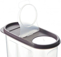 Víko s výklopným výsypným otvorem umožní nasypat přesné množství mouky, cukru či cereálií bez sundávání celého víka.