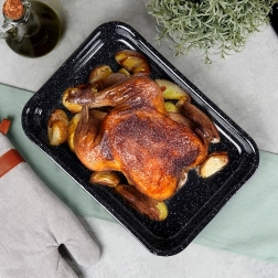 Obdélníkový pekáč z odolné smaltované oceli je skvělým pomocníkem pro každodenní pečení. Rovnoměrně rozvádí teplo, jídlo se nepřichytává a povrch se snadno udržuje. Vnitřní rozměry 31,5 × 22 × 4,5 cm poskytují dostatek prostoru pro maso, přílohy i dezerty.