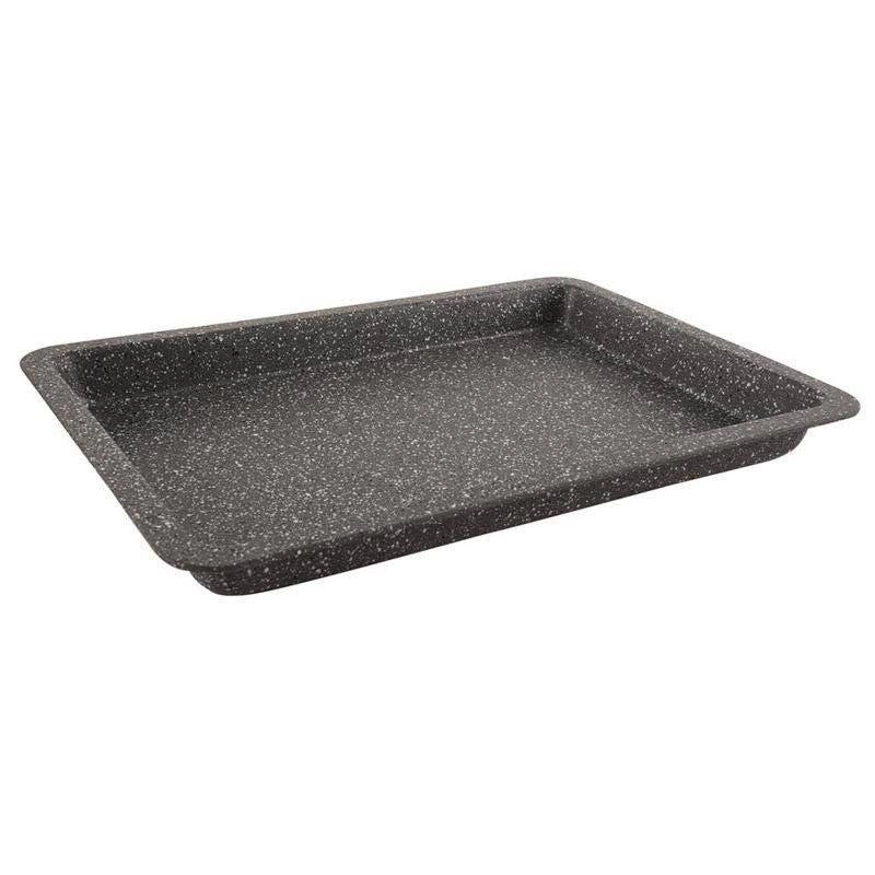 Tato prostorná pečicí forma 43 × 29 cm s vnitřními rozměry 37,5 × 25 cm je ideální pro koláče, řezy, maso, zeleninu i studené dezerty. Odolná konstrukce z uhlíkové oceli s granitovým nepřilnavým povrchem minimalizuje připekání a usnadňuje servírování i čištění.
