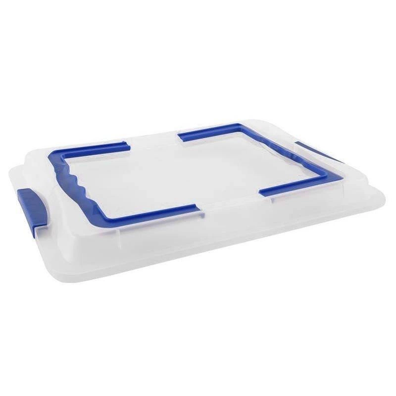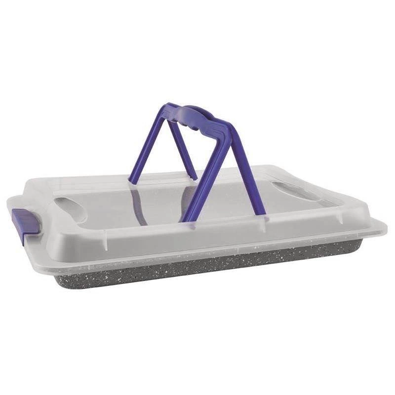 Pevné průsvitné víko s klipy a sklopným držadlem udrží koláče i lahůdky v bezpečí při cestě na návštěvu či piknik.