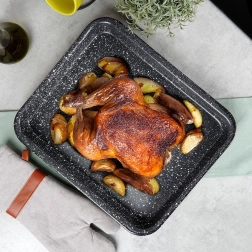 Vysoké okraje a rovnoměrná vodivost tepla jsou skvělé pro šťavnaté pečeně, brambory či zapékané pokrmy.