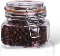 Praktická skleněná zavařovací sklenice s klipovým uzávěrem a gumovým těsněním o objemu 500 ml je ideální pro každodenní použití v kuchyni. Díky pevné skleněné konstrukci, kvalitnímu kovovému klipu a těsnému uzavírání udrží potraviny déle čerstvé. Skvěle se hodí na kávu, čaj, koření, malé ovoce i domácí zavařeniny.